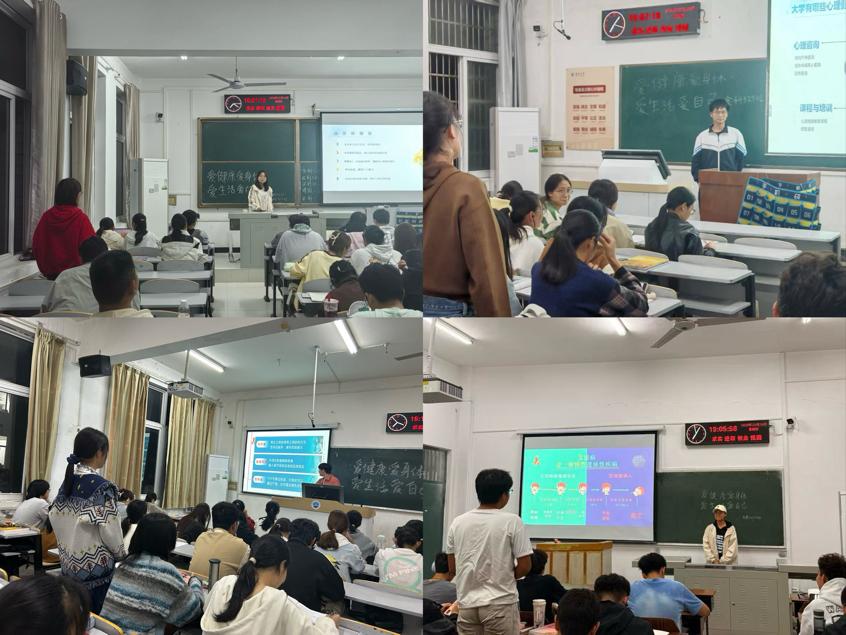 (通讯员 吴芯怡 朱翠玲)为促进新生身心和谐发展,树立积极健康的生命观,10月16日晚,生命科学学院组织各班级成功举办了以“爱健康爱身体,爱生活爱自己”为主题的心理班会。本次主题班会由各班心育委员担任主讲,覆盖全体新生,在各班自习教室同步举行。