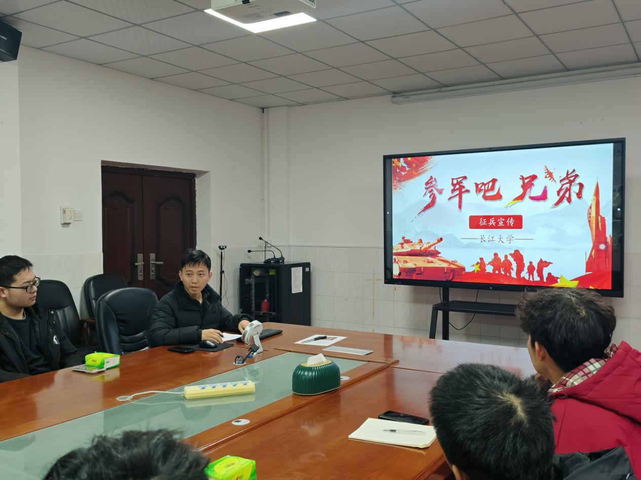 (通讯员章崇烁李航)国无防不立,民无防不安。为鼓励同学们积极参军入伍,做好2026年春季入伍征兵工作,生命科学学院于2025年12月24日中午在1教217会议室开展了征兵宣讲活动。出席本次宣讲活动的有学院征兵就业专干章崇烁老师,退役士兵大学生窦笑爽及各班级代表。