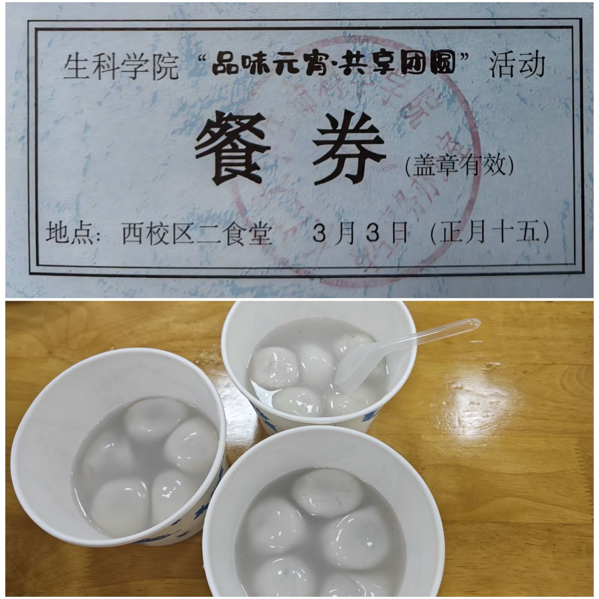 (通讯员 朱翠玲) 春意渐浓,佳节又至。3月3日,正值农历正月十五元宵节,为弘扬中华优秀传统文化,让远离家乡的学子们在校园里感受到家的温暖,同时增进师生情谊,生科学院精心策划并开展了“品味元宵,共享团圆”主题活动,为全院师生发放了节日餐券,邀请大家一同前往食堂品尝汤圆,共话团圆情。