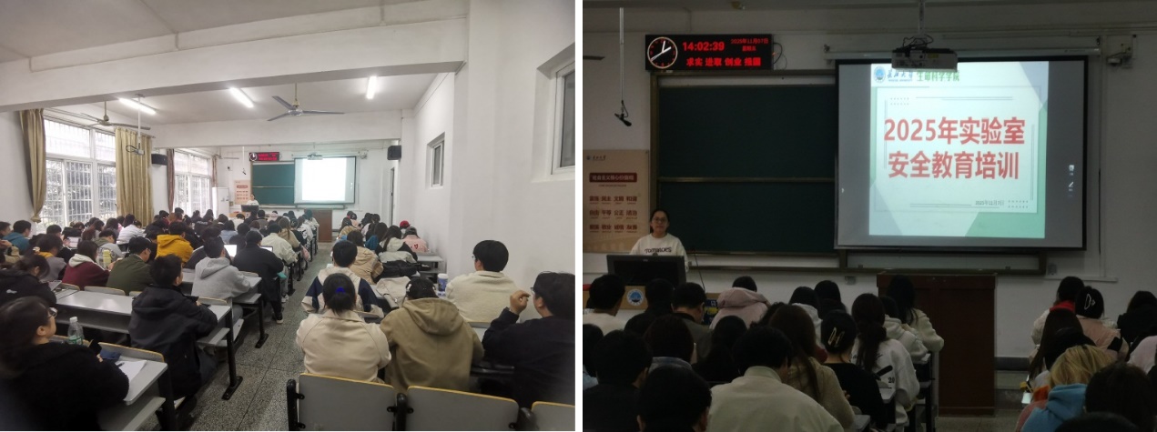 学院高度重视对学生的安全教育,通过实验室安全教育培训、组织线上学习、在线考试、专题讲座等多种形式,深入学生中间开展安全教育培训。培训紧密围绕实验过程中常见的火灾预防、危化品储存使用及仪器设备安全操作等核心内容,详细讲解了预防措施、操作规范以及应急处置流程,让学生直观掌握安全知识。引导学生牢固树立安全意识,自觉遵守实验室管理规定,养成良好的实验习惯。